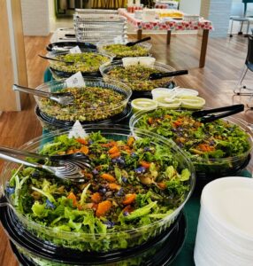 Your food is delivered fully prepared hot and/or cold and ready to SERVE! Upon arrival, food tables should be set up and covered with linen or paper cloth. We will arrive approximately 30 minutes before the start of your event to display the food. Food is delivered in aluminum containers and on plastic serving trays. B&W will provide labels for all food delivered, with any dietary restrictions on each label, if requested. We will also include plastic serving tongs and spoons. We can provide our eco-friendly disposable paper goods at an additional cost, or you can provide your own. Once delivered, it will be the client’s responsibility to follow food safety rules.
